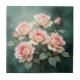 Blush Rose Elegance on Deep Jade Ceramic Tile