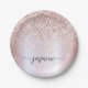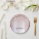 Blush Rose Gold Glitter Girly Monogram Name Script Paper Plate