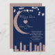 Blush Rose Navy Nightime Skyline Wedding Invitation