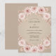 A delicate blush pink floral wreath encircles the centre of this design. Soft, romantic roses and subtle foliage create an elegant and tender atmosphere for your special day. This design evokes a feeling of sweet intimacy.