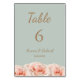 Blush Roses Sage floral Wedding Table number