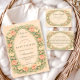 An ornate floral arch of peach and buttercream roses surrounds this romantic garden-inspired design, creating a soft heirloom aesthetic with timeless charm. Delicate greenery, layered blossoms, and a classic oval frame give it a refined Victorian feel while keeping the layout airy and balanced. Perfect for a spring celebration, garden brunch, or elegant afternoon gathering. The structured botanical border frames your event details beautifully while maintaining a graceful, storybook finish.