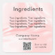 Blush pink silk, satin print as background, black text. Personalise and add a headline, your product ingredients, business name , contact information and your own qr code to your website.