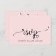 This blush pink simple calligraphy song request RSVP card is perfect for an elegant wedding. The design features a romantic and sweet flowing cursive font on a lovely and delicate light ballet pink background. Build your wedding guest list and your dance floor song list all at once! This wedding response postcard conveniently asks guests if they will be able to attend your wedding, and also what song will get them to dance.