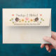 These envelopes and stickers are part of a fall floral rustic string of lights wedding invitation set in blush, coral, green, brown, white, yellow and brown hues. An autumnal laurel wreath composed of acorns, berries, sunflowers, tulip rose and white blossoms sit on a leafy branch on a antique cream parchment look background. The couple's name is flanked by two sweet hearts. Perfect for an outdoor fall, night time, country, farmhouse, barnyard or rural chic themed wedding, anniversary party, engagement dinner or bridal and couples shower. A surprise, beautiful wood look background reminiscent of a wooden fence and or barrel with nail head trim and charming twinkle and fairy lights with a bokeh effect look bright, sweet, warm and inviting on the inside of the envelope. Artwork © Chrissy H. Studios, LLC. All rights reserved.