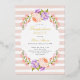 Affordable custom printed graduation party invitations personalised with your event details. This pretty botanical design features a watercolor frame of peach and lavender flowers on a blush striped background. Use the design tools to customise the text, edit the fonts and colours or add your own photos to create an elegant spring floral graduation invitation.