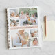 Chic photo collage notebook features six square photos (2 large, 4 small) arranged in a grid layout with a blush pink stripe running through the centre. Ideal for displaying your photography portfolio or treasured family photos.