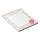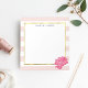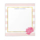 Chic personalised notepad features a trendy blush pink and white stripe background, faux gold foil border, and a vibrant pink watercolor peony flower. Customise with a monogram, name or text of your choice.