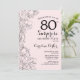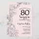 Blush pink and white floral surprise 80th birthday party invitation. Elegant modern design featuring botanical accents and typography script font. Simple floral invite card perfect for a stylish female surprise bday celebration. Can be customised to any age. Printed Zazzle invitations or instant download digital printable template.