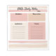 A lined notepad featuring blush tone stripes as a header that displays the words 'Bible Study Notes' beneath it are boxes in blush colour variations where you can write down scriptures, observations, applications and prayer requests. A tonal blush stripe border along the bottom of notepad. A simplistic notepad to have on hand for taking with you to your studies, services or events.