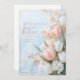 Welcome your guests with the gentle charm of our Blush Tulip Floral Wedding Invitation. This beautifully balanced design features soft peach-pink and white tulips paired with baby's breath and dried florals, all arranged on a dreamy pale blue marble background. A thin gold frame adds a modern, elegant finish that makes this invitation feel fresh, romantic, and timeless.