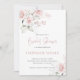 These beautiful bridal shower invitations feature a frame of elegant garden illustrations, with pink roses and greenery. Your details appear in the center, with a heading of a hand-script calligraphy font followed by chic serif text.