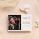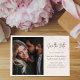 This design features a wedding save-the-date card with a modern minimalist, calligraphy script, and blush floral design, a simple photo template, and QR code website details.
