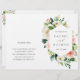 Blush Bloom Wedding Program features painted watercolor flowers in blush pink, white, and green foliage with a Hexagon frame.