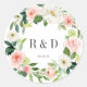 Blush White Bloom Floral Wreath Monogram Classic Round Sticker
