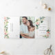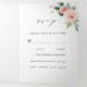 This all in one tri-fold wedding invitation card features painted watercolor flowers in blush pink, white and green foliage with a gold rectangle frame, add wedding details, rsvp, and your photo. For more advanced customisation of this design, please click the "customise further" link. Matching items are also available.