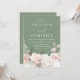 Blush White Botanical Roses Sage Green Wedding Invitation