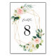 Elegant Wedding Table Number Card featuring painted watercolor flowers in blush pink, white and green foliage with gold frames. For more advanced customisation of this design, Please click the "Customise" button. Matching items are also available.