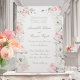 An elegant blush pink and white watercolor painted wedding invitation, featuring blush Secret Garden Pink and white Desdemona roses with silver greenery in a floral garden flanked on either side of the invitation with an open top and bottom, with your names and details in a classic wedding script.