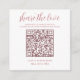 Blush and white share the love QR Code cards. Place these small cards at your wedding reception tables so guests can scan to upload the photos they took at your wedding reception to your album or social media. To generate a new QR code on the design, add the URL of your online wedding album or social media handle in the area provided, using the "personalise" feature. A brand new QR code will then be added to to the design.