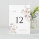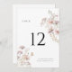 This blush wildflower wedding table number features soft floral artwork, elegant serif typography, and a romantic neutral design. The airy layout and balanced floral placement create a refined, timeless look that complements boho, garden, vineyard, and outdoor weddings beautifully.
