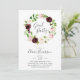 Elegant floral graduation party invitations feature a wreath of watercolor flowers in blush pink, burgundy marsala and ivory with lush green botanical foliage and leaves, encircling "grad party" in chic handwritten lettering. Personalise with your graduation celebration details beneath. Designed to match our Blush Romance event stationery collection.