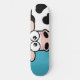 Blushing Cow Skateboard Deck. Design features an embarrassed black and white cow on a blue background. Perfect for girl skaters. Design © Lisa Marie Robinson
