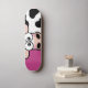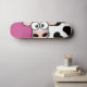 Blushing Cow Skateboard Deck. Design features an embarrassed black and white cow on a pink background. Perfect for girl skaters. Design © Lisa Marie Robinson