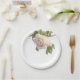 A beautiful vintage design of romantic blushing ivory peach roses framed in green leaves.