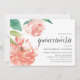 Sweet floral invitations for elegant quinceanera celebrations feature watercolor peonies in blush pink and peach, accented with lush greenery. Customise with your quinceanera details aligned at the right and embellished with chic calligraphy. Invitations reverse to a subtle peachy blush watercolor wash background.