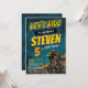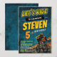 With its bold yellow typography and retro aesthetic, this invite is ideal for 5th birthdays, 10th birthdays, or any kid obsessed with bicycles and racing. The layout is clean and energetic, making all your essential party details from the "Let's Ride" tagline to the RSVP info easy for guests to read. Fully customize the name, age, date, and location to create a rugged and memorable invite for your little shredder!