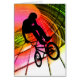 The sports action and energy of BMX athletes are captured in silhouettes of action figures demonstrating extreme tricks and stunts on their bikes. Digital paintings and illustrations of these teens and young men include backgrounds of bright, vivid colours and splashes and bursts of light to highlight the action. They also show off in grungy and edgy street scenes where kids earn their street creds showing off their bicycle skills.