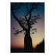 Silhouette of an old boab tree (an Australian native) with a colourful sunset background.
