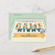 Game Night Invitation Postcard featuring a fun typography of "Game Night''. This designs include elements of blue, yellow, red and orange, a game board background, dice, game pieces, game cards, and elements inspired by board games. Products include a template for personal customisation.