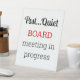 Preserve your meeting sanity with this attractive and straightforward message. Give others a heads up to be quiet, when they come into your space. Featuring a combination of script and modern typography, this pedestal sign gets straight to the point. Place where it can easily be seen and meet in peace!