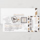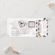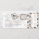 A boarding pass inspired ticket invitation with fun passport stamp details and airmail stripes. Shown in shades of Dark Brown, Tan, Dark Grey and Light Grey. Back side includes extra space for any hotel, travel or website information.