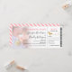 Elegant pink & gold wedding boarding pass with an rsvp section featuring a photo of the happy couple, a gold foil compass and plane, and a text template that is easy to personalise.