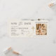 Boarding pass style save the date designed like a plane ticket and featuring a QR code for a modern, travel inspired announcement. Created so guests can quickly scan to save the date, view wedding details, or access a website. Ideal for destination weddings, travel themed celebrations, and adventurous couples. Editable text and QR destination. Clean print-ready layout.