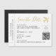 Guests will display these cute travel theme mini boarding pass magnets on their fridge the second they arrive as part of your fun destination wedding save the date set. With our romantic gold aeroplane heart design and fun ticket fonts creating the perfect combination of elegant, modern, retro, fun, and formal so they can coordinate with just about any other beach wedding or travel theme save the date card. These mini magnets are the size of a postcard and need an envelope to mail. Slip them in with a larger card, or hand them out to your bridal party and family for a unique wedding keepsake that will remind them of the trip they get to have while attending your wedding!