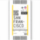 Sticker design based on a boarding pass to San Francisco, California.