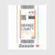 Sticker design based on a boarding pass to Orange County, California.