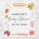 Add a tasteful touch to your baby shower celebration with this charcuterie-inspired wine label, featuring hand-painted watercolor illustrations of classic antipasto favourites like grapes, cheese, bread, olives, and cured meats. Personalised with the guest of honour’s name and shower date, this whimsical yet refined label is perfect for dressing up wine bottles at the event or giving as stylish party favours. Designed to coordinate with the full charcuterie baby shower collection, it’s a charming detail that ties your theme together beautifully.