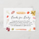 Invite guests to help build baby’s first library with this charming “Books for Baby” card from our Boards and Bottles collection. Featuring hand-painted watercolor illustrations of charcuterie ingredients—like cheese, bread, fruit, and baby bottles—this insert card is a sweet and stylish addition to your baby shower suite. Tuck it inside your invitation to kindly request a book in place of a card. Whether gently used or brand new, each book will be cherished as a heartfelt gift for the little one.
