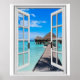 Ocean view fake window. Coastal scene, for a windowless office wall. Fun, realistic optical illusion scenic poster for an office or study wall.