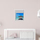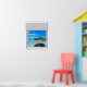 Beautiful boardwalk tropical seas, fake window scene, for a windowless bathroom or office wall. Fun, realistic optical illusion scenic poster for an office or study wall.