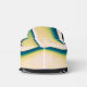 This Sling Bag features original artwork by ZoeSPEAK, a closeup view of the curves of the hull of a boat in the afternoon sunlight. The artwork is done in shades of blue and warm white, with yellows from the sunlight.