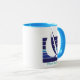 Our "Boat Blues Square" Palm Beach baby blue ringer mug features a simple, elegant sailboat design, backed with a graceful gradation of ocean-blue hues. You can also adapt the design to any mug style you wish. Just click the "Customise it" button to your right, and away you go! Plus you can add a name or any text you want to the blank side.