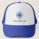 A navy blue compass rose is centred on the front of this Captain's hat. Add your boat's name and home port to make this personal.