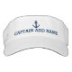 Boat captain hats | nautical anchor sun visor cap. Custom sunvisor cap with custom sailor name. Personalised sports sun visor hats for men, women and kids. Stylish typography. Great for boating, sailing and other maritime outdoor water sports. Create your own for friends and family. Add your own surname, first name or last name. Cute gift idea for navy dad, mum, father, mother, husband and wife, girl, boy etc. Customisable background colour. Also nice for as beach wedding favour for bride and groom. Ship anchors aweigh! Ship anchor design.