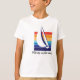 Our Boat Colour Square t-shirt template features a simple, elegant, sailboat design, backed with a graceful gradation of ocean-to-sunset rainbow hues, and a text placeholder ready to be customised by you. If the kids ringer T isn't your style, not to worry, this fresh, classy design is adaptable to any garment -- men's, women's, kids or baby. You can also choose where you'd like to put the design -- front or back, pocket or chest -- and, you can resize the design, within printing borders, to fit your personal taste, plus, of course, add your own text, font style and colour! Just click "Customise it," and away you go